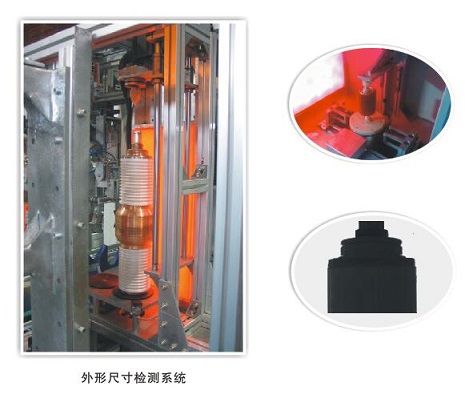 該設備為滅弧室產(chǎn)品外形尺寸檢測設備。采用工業(yè)相機成像系統(tǒng)完成導桿直徑、外殼直徑、產(chǎn)品總長和形位公差(檢測外形圖標注的平行度、垂直度、同軸度)等測試。系統(tǒng)由主控單元、機械執(zhí)行機構(gòu)、測量系統(tǒng)、數(shù)據(jù)管理系統(tǒng)等組成。系統(tǒng)根據(jù)配置參數(shù)自動運行,可對不同外形大小、不同電壓等級的真空滅弧室進行同軸度(垂直度)檢測,同時滿足滅弧室外形尺寸的同步檢測,測試數(shù)據(jù)能夠支持電子隨工單系統(tǒng)提取。